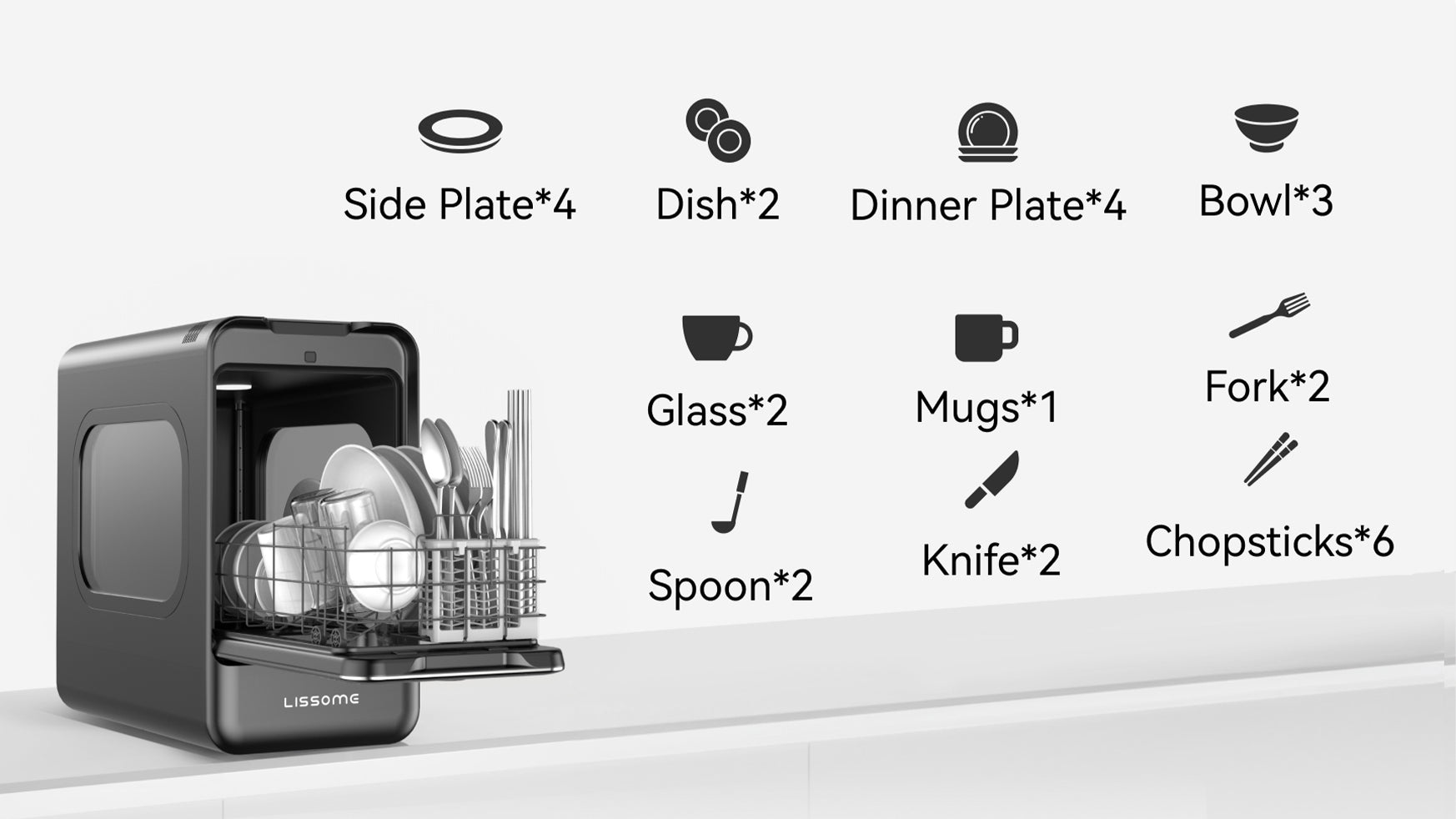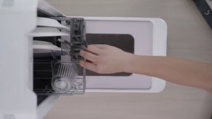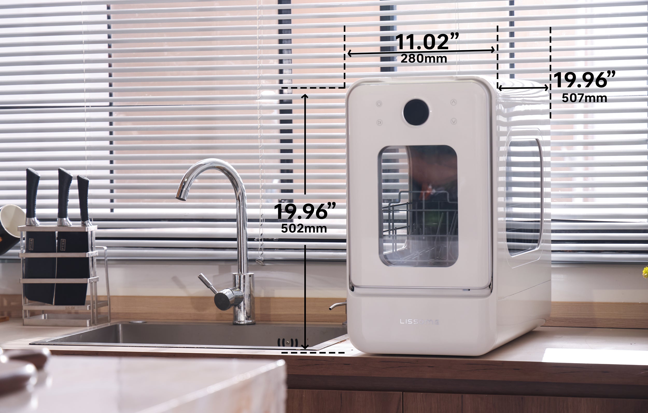 The LISSOME R1 can be easily started for use in around two minutes with just three simple steps. First, plug in the machine and either attach the water hose or manually fill it with water. (If you choose to connect the water hose, a faucet adapter might be required.) You'll hear a "bleep" sound when the water tank is full. After that, add detergent, and you're all set to begin using the dishwasher.