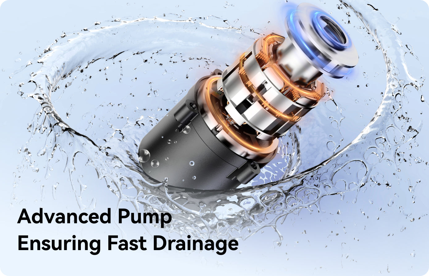 Equipped with centrifugal and peristaltic pumps, R1 swiftly drains water, leaving no residue behind and minimizing the risk of bacterial growth. A seamless waterway design drastically reduces the risk of leakage compared to traditional dishwashers with multiple connections.