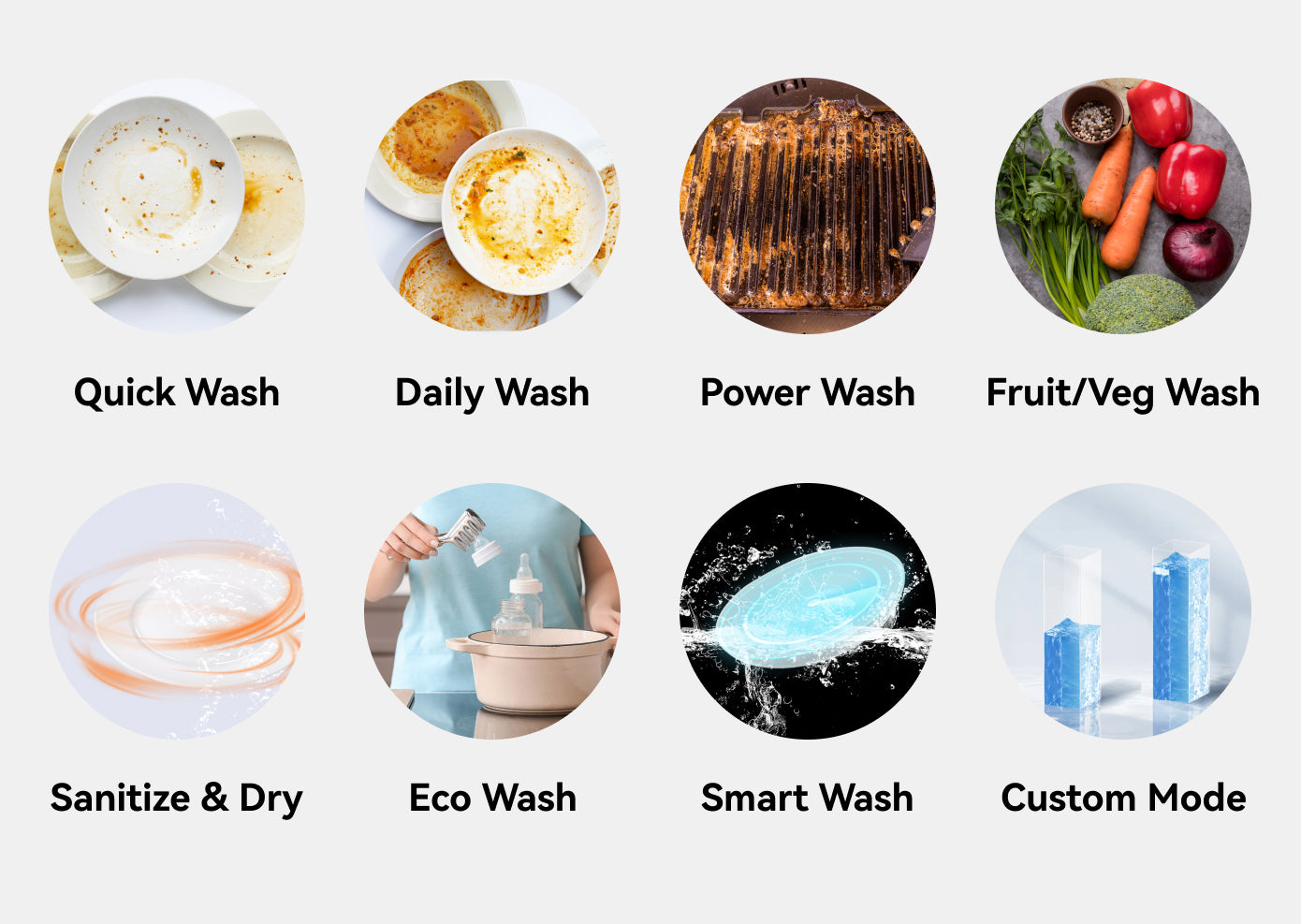 With eight distinct cleaning modes, LISSOME R1 can effortlessly handle everything from greasy grills to delicate fruits and vegetables. Custom mode even allows you to control the cleaning duration as you like.